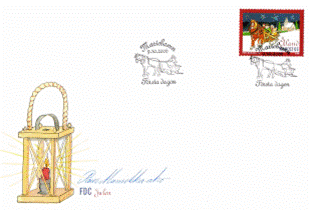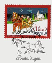 Ahvenanmaan joulupostimerkki, ensipäiväkuori ja leima |