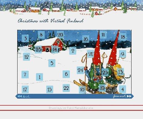 Päivi Mansikka-ahon maalauksista tehtiin joulukalenteri Suomen Ulkoasiainministeriön sivustoille www.virtual.finland.fi Kuvien ja tekstien kautta tehdään maailmalle tutuksi suomalaista joulua. |