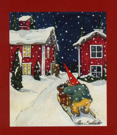 Ministry for Foreign Affairs of Finland have used Mansikka-aho´s postcard paintings to Finnish Christmas pages