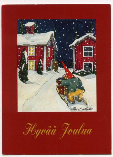 Päivi har tidigare gjort vissa saker som hör till postväsendet, men hon har aldrig tidigare gjort ett frimärke. Hon känner sig mycket stolt över att ha fått den möjligheten, och frimärket är dessutom väldigt representativt för hennes arbeten som berör julen. Målningar med häst och släde är nämligen det mest efterfrågade motivet i jultider och det är mycket populärt när det gäller postkort.